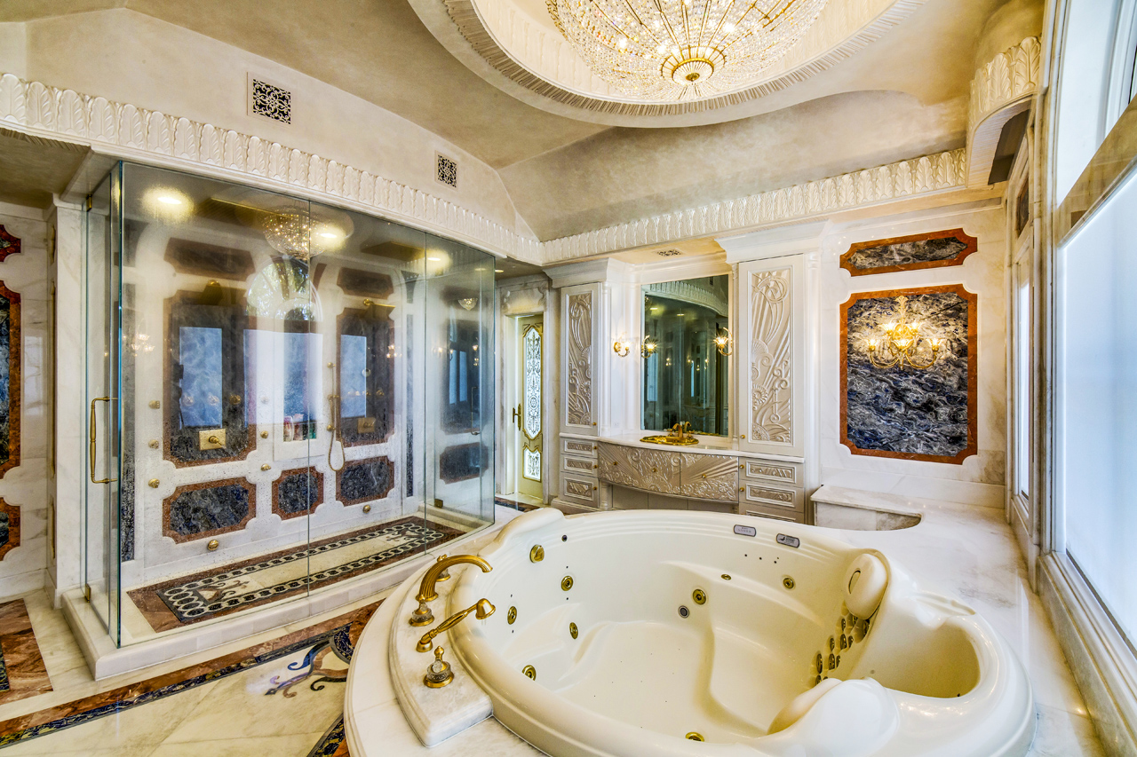 This beautiful and highly detailed traditional design is steeped in the ornamental language of the Art Nouveau movement. CNC technology enabled accurate deco carvings to adorn the drawer and door faces, including the bombayed panels on the center sink cabinetry.