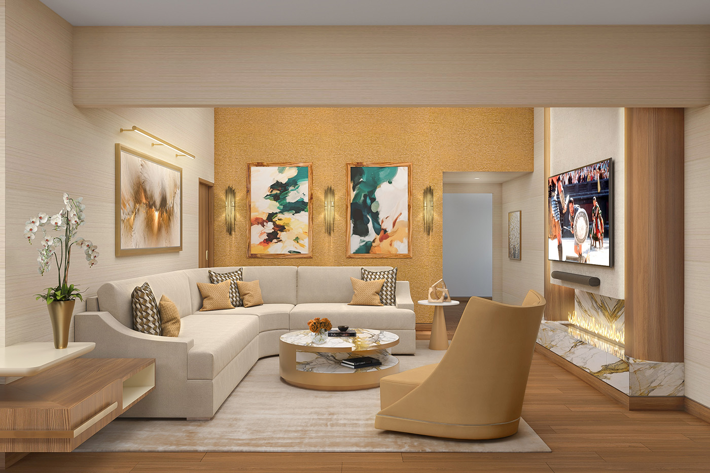 This modern design, impeccably installed to a vaulted ceiling is quite the focal point. Finished in Fumed Larch and Calacatta Gold Porcelain, this exciting piece accommodates an 85″ TV, wall mounted sound bar and a 72″ Bio Flame Linear Alcohol Fireplace. Half-columns in Fumed Larch flank the TV and fireplace and concealed in the base are two storage drawers with porcelain faces as well as an access panel to refuel and service the alcohol fireplace unit.