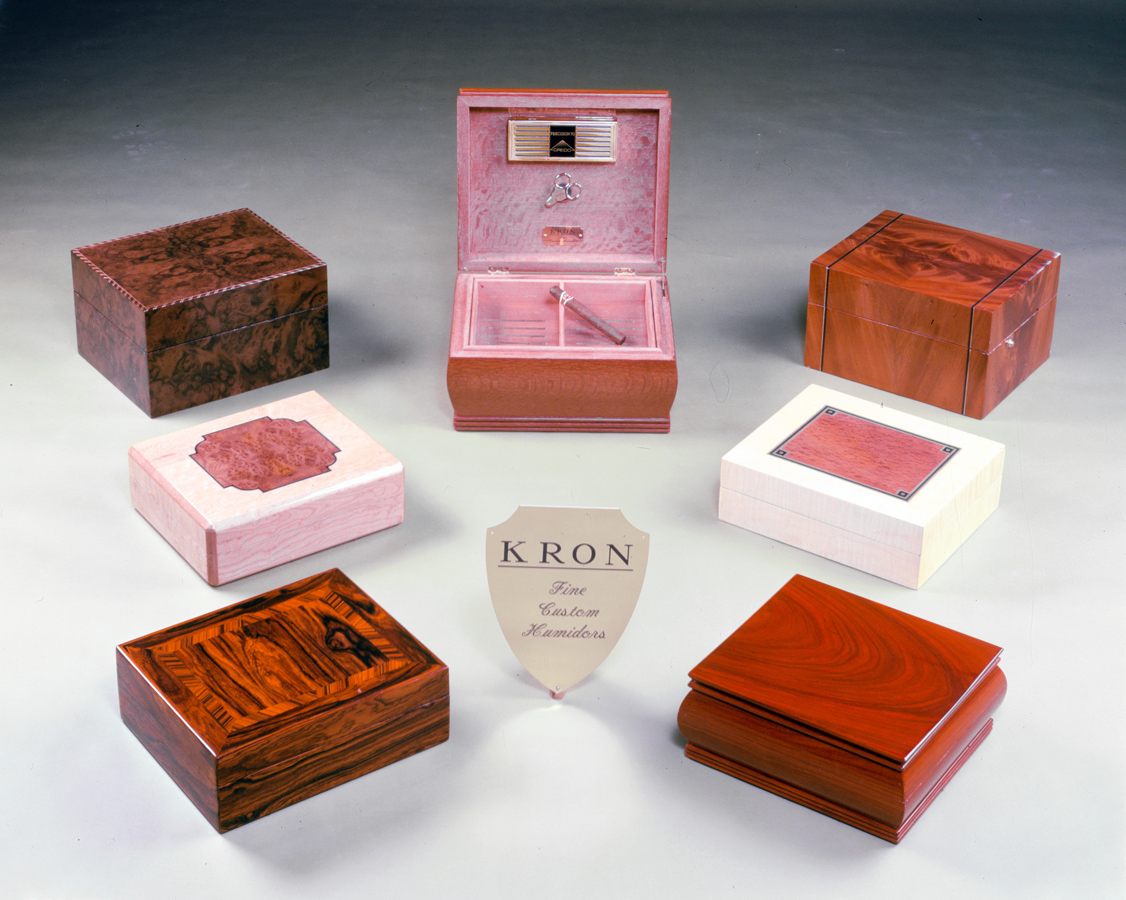 Custom Made Exotic Wood Humidors featuring hand crafted inlays and lined in Spanish Cedar.