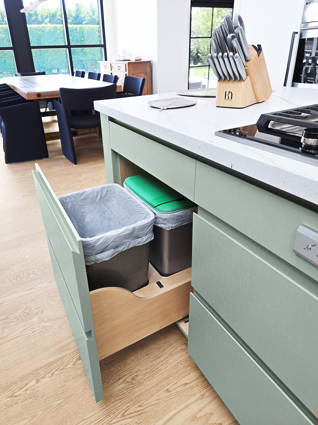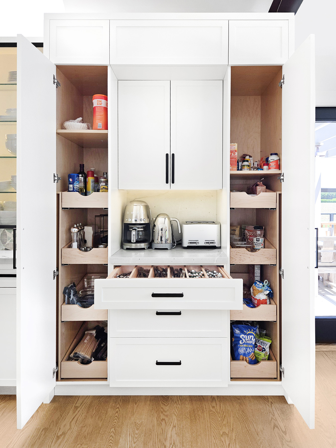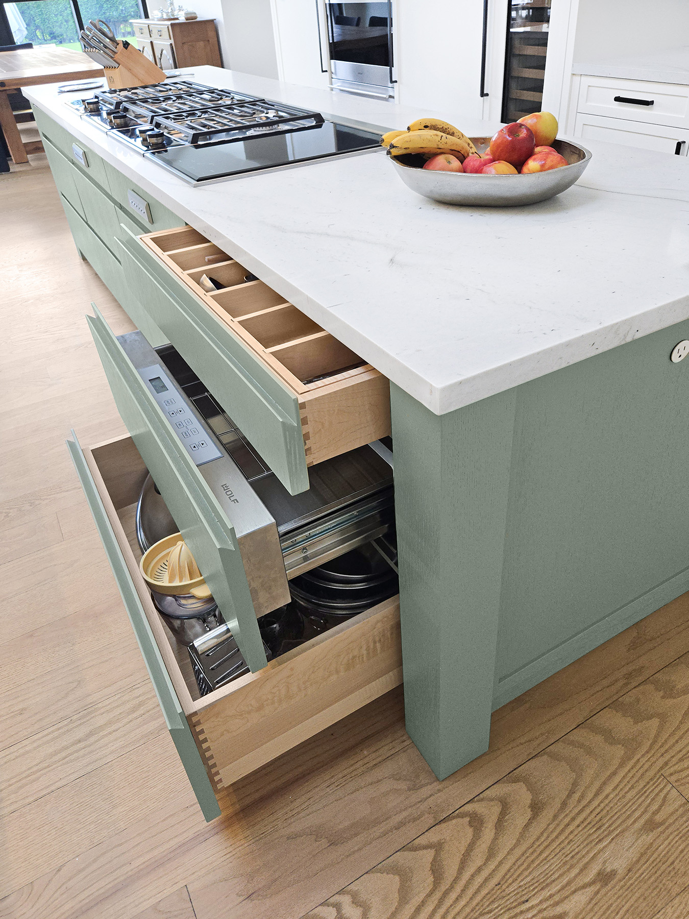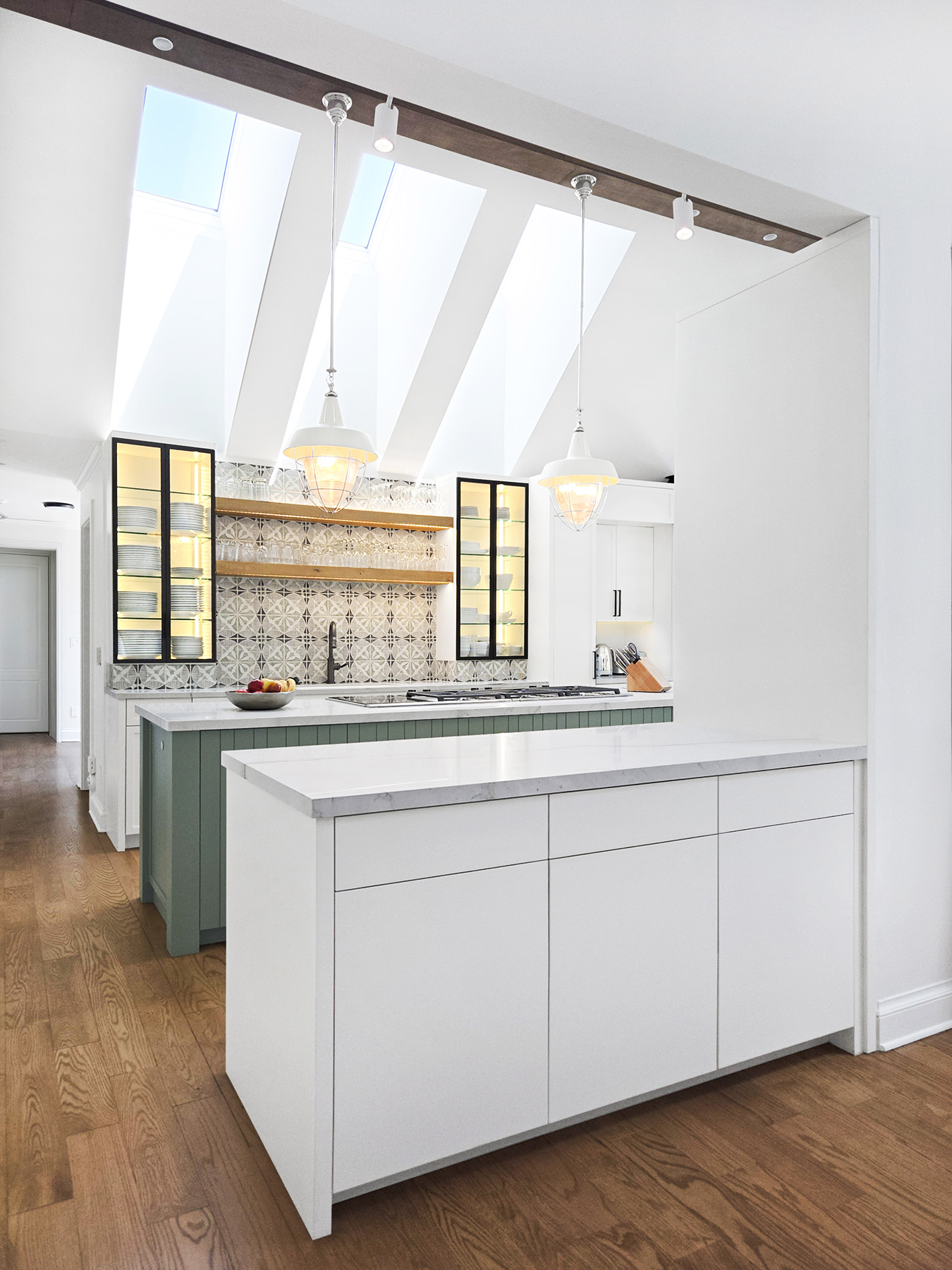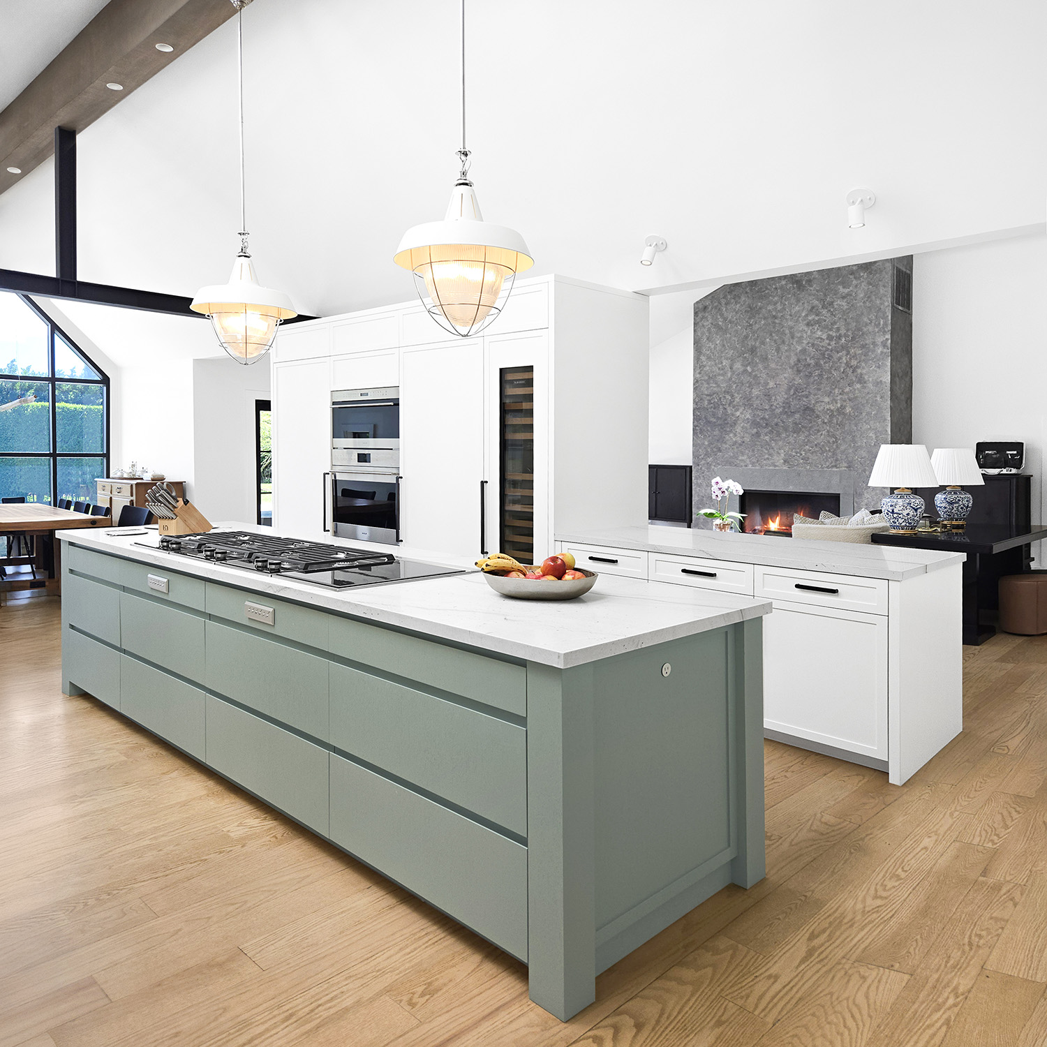 This bright and inviting Hamptons kitchen illustrates how stunning custom millwork can integrate seamlessly with both connecting interior spaces and the surrounding outdoor views.