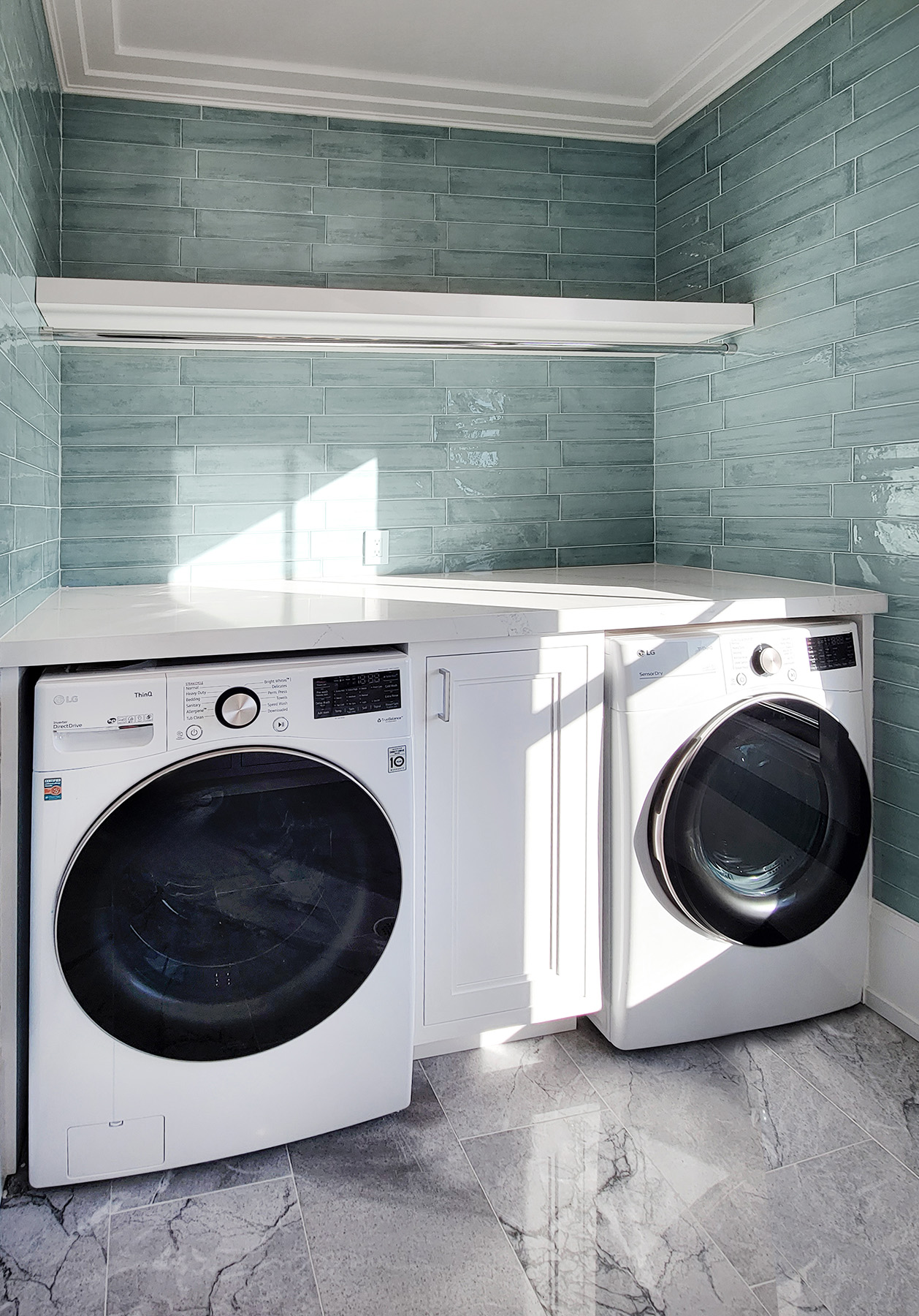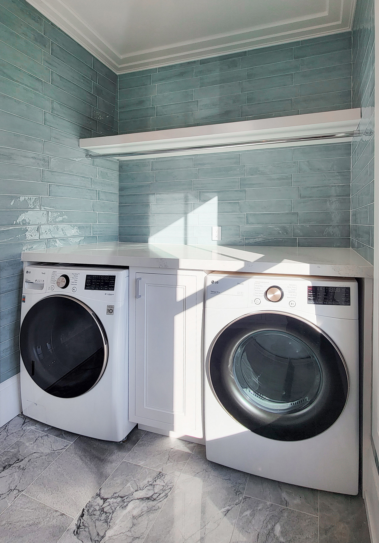This built-in laundry room maximizes space and function with classic traditional style.