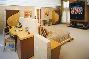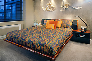 14. Modern Bedroom in Black Lacquer and Cocobolo Wood