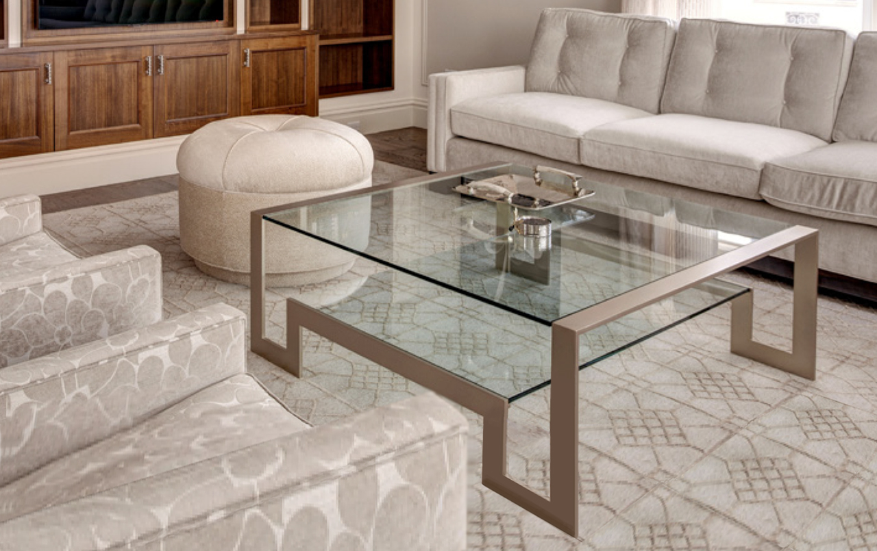Glass Cocktail Table in polished Nickel and tempered glass make a light, open and functional design.