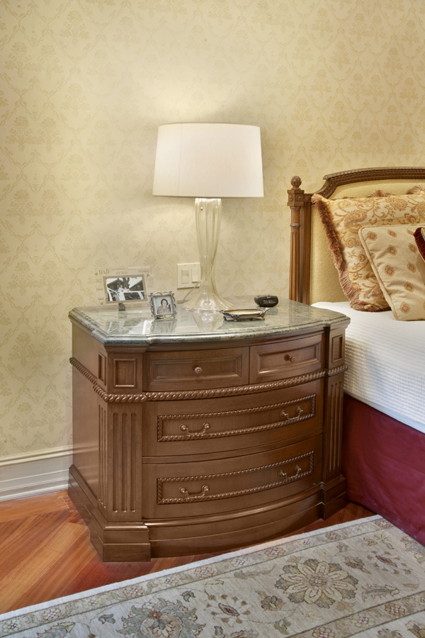 English Bombay Night Table with fluted pilasters, marble top and carved rope detailing.