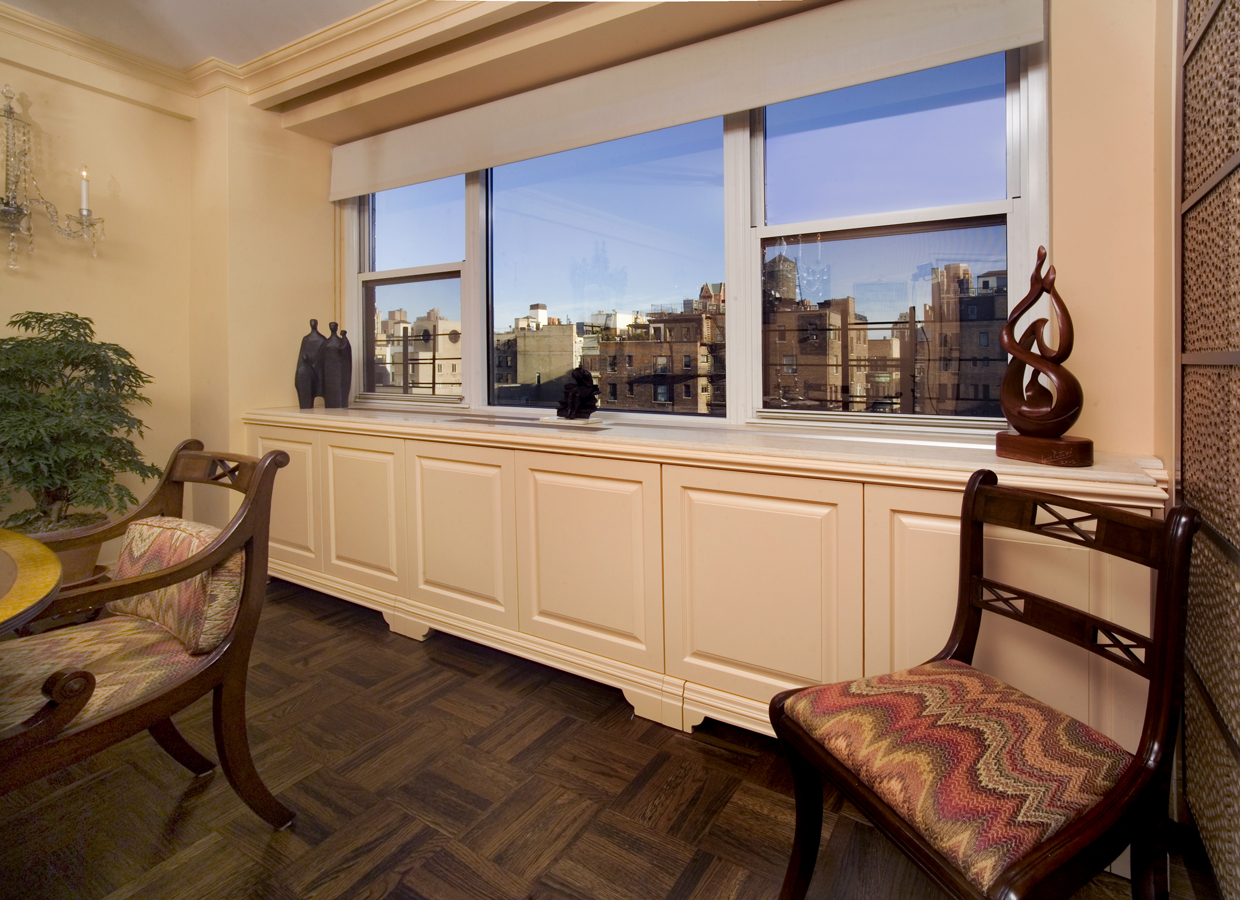 Traditional HVAC Enclosures with classic details, raised panels & sculpted base in a satin lacquer finish.