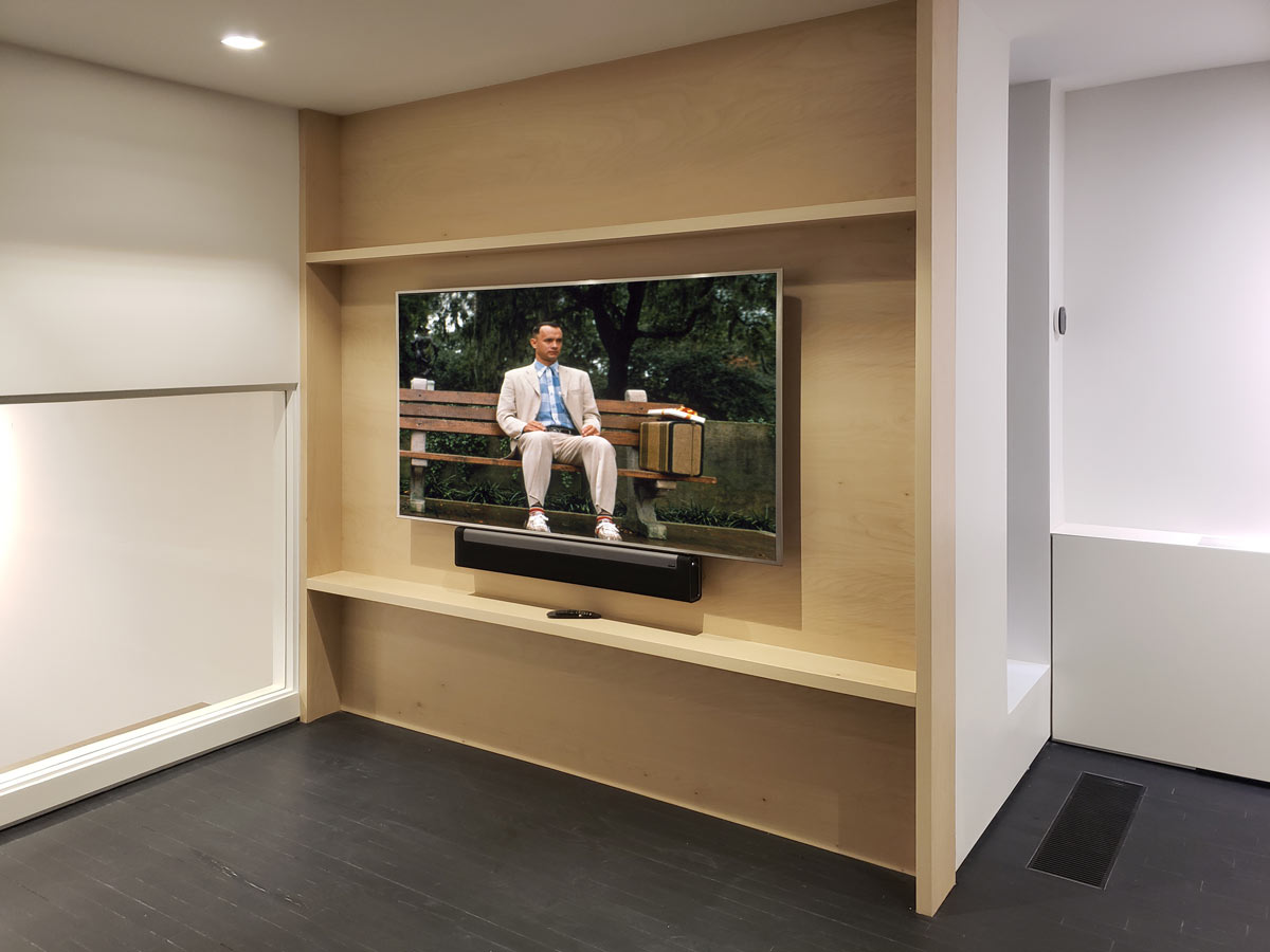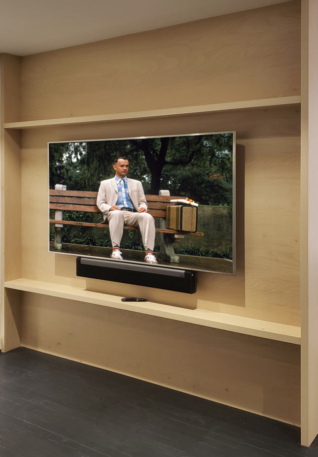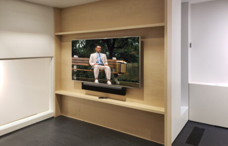 This open design is installed floor to ceiling and is crafted in Plain Sliced White Maple