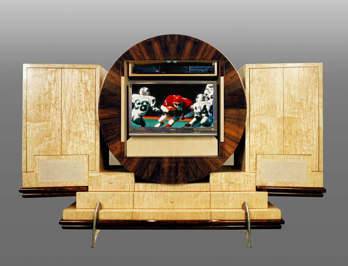 The Butterfly and Pi A/V Units in Karelian Burle, Cocobolo and stainless steel.
